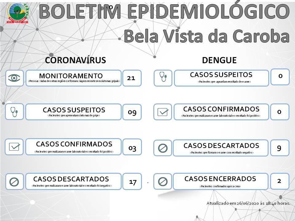 Boletins COVID-19 - Boletins 09 Março 2021 Acessos: 994 Boletim Epidemiológico Coronavírus e Dengue 26/06/2020