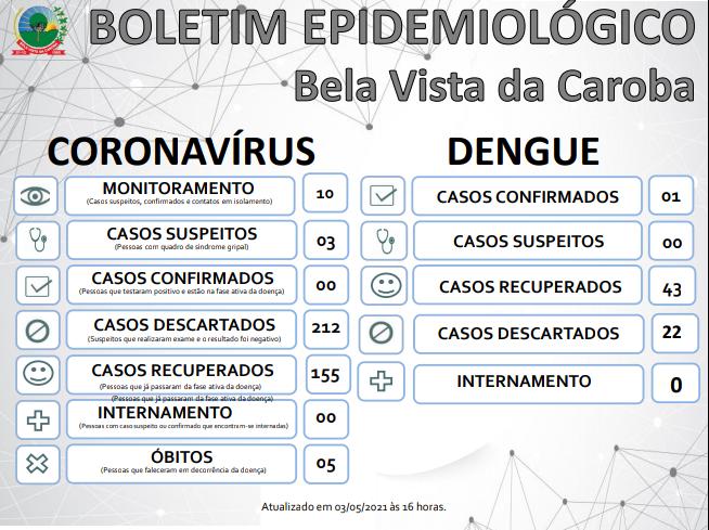Boletins COVID-19 - Boletins 03 Mai 2021 Acessos: 977 Boletim Epidemiológico Coronavírus e Dengue 03/05/2021