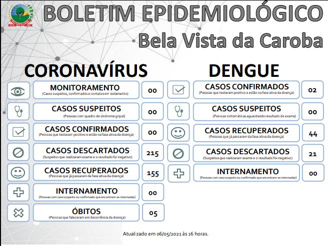 Boletins COVID-19 - Boletins 06 Mai 2021 Acessos: 965 Boletim Epidemiológico Coronavírus e Dengue 06/05/2021
