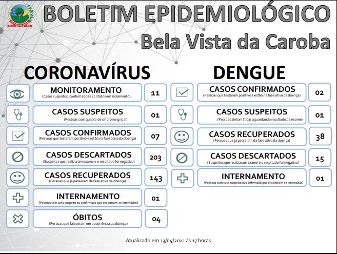 Boletins COVID-19 - Boletins 14 Abril 2021 Acessos: 938 Boletim Epidemiológico Coronavírus e Dengue 13/04/2021