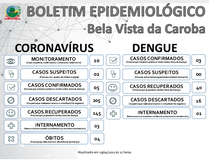 Boletins COVID-19 - Boletins 19 Abril 2021 Acessos: 961 Boletim Epidemiológico Coronavírus e Dengue 19/04/2021