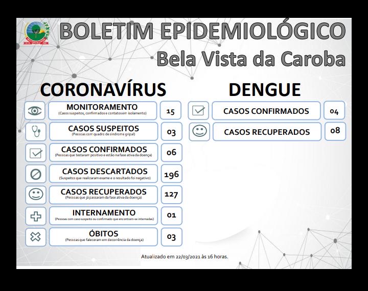 Boletins COVID-19 - Boletins 23 Março 2021 Acessos: 959 Boletim Epidemiológico Coronavírus e Dengue 22/03/2021