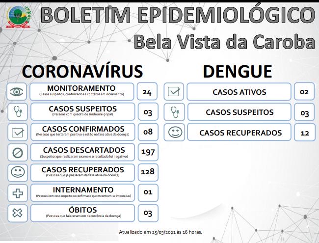 Boletins COVID-19 - Boletins 25 Março 2021 Acessos: 959 Boletim Epidemiológico Coronavírus e Dengue 25/03/2021