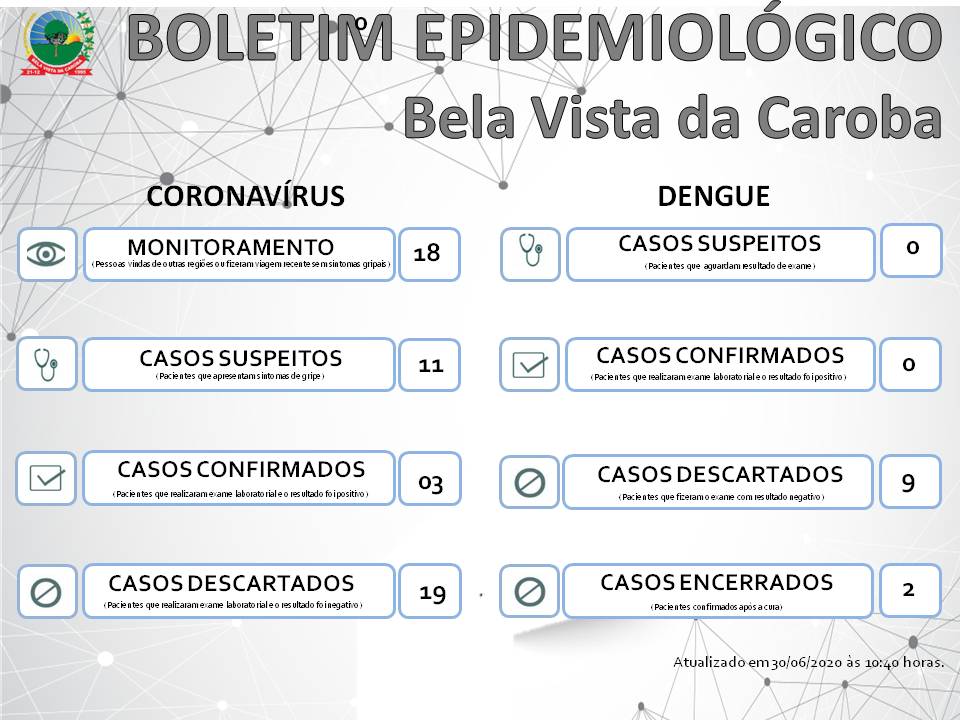 Boletins COVID-19 - Boletins 09 Março 2021 Acessos: 960 Boletim Epidemiológico Coronavírus e Dengue 30/06/2020