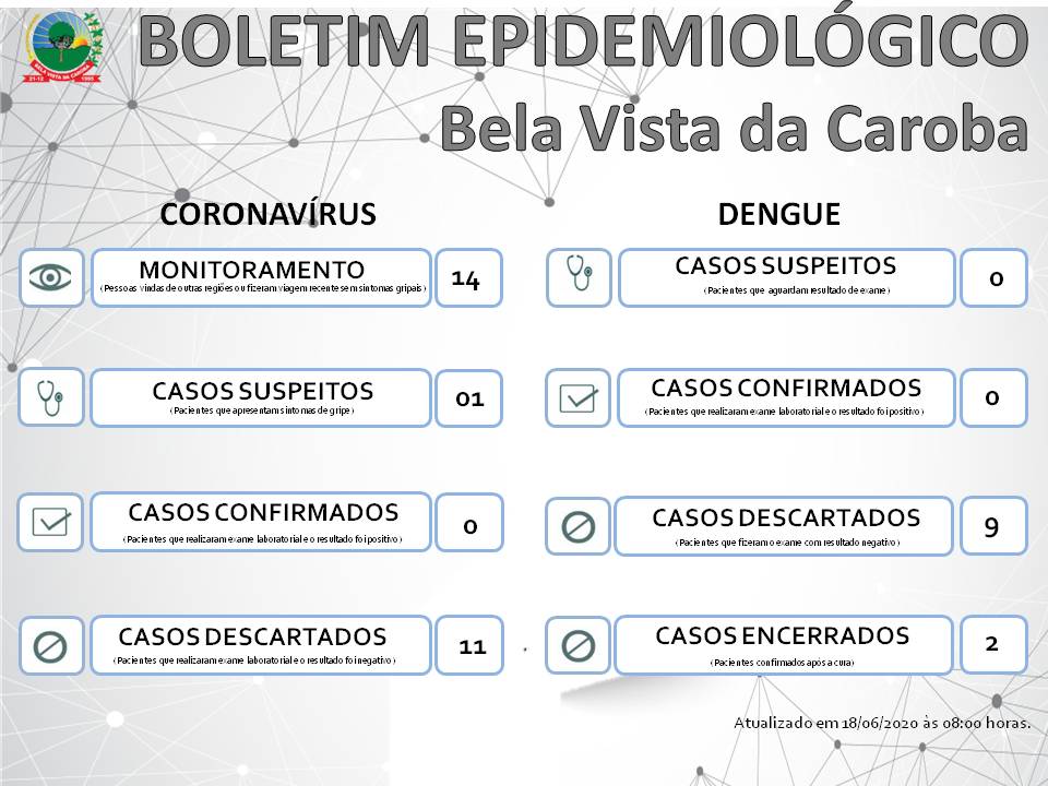Boletins COVID-19 - Boletins 09 Março 2021 Acessos: 955 Boletim Epidemiológico Coronavírus e Dengue 18/06/2020